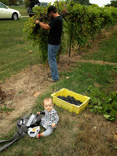 We had our second trip out to pick grapes last weekend. Estelle did very well while Keith and I worked hard at harvesting the grapes. Here are some great pics of the two of them.